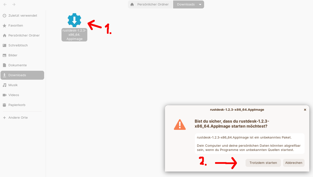 Sollten Sie einmal Unterstützung bei Problemen mit Ihrer Linux-Installation benötigen, dann nutze ich dafür rustdesk.