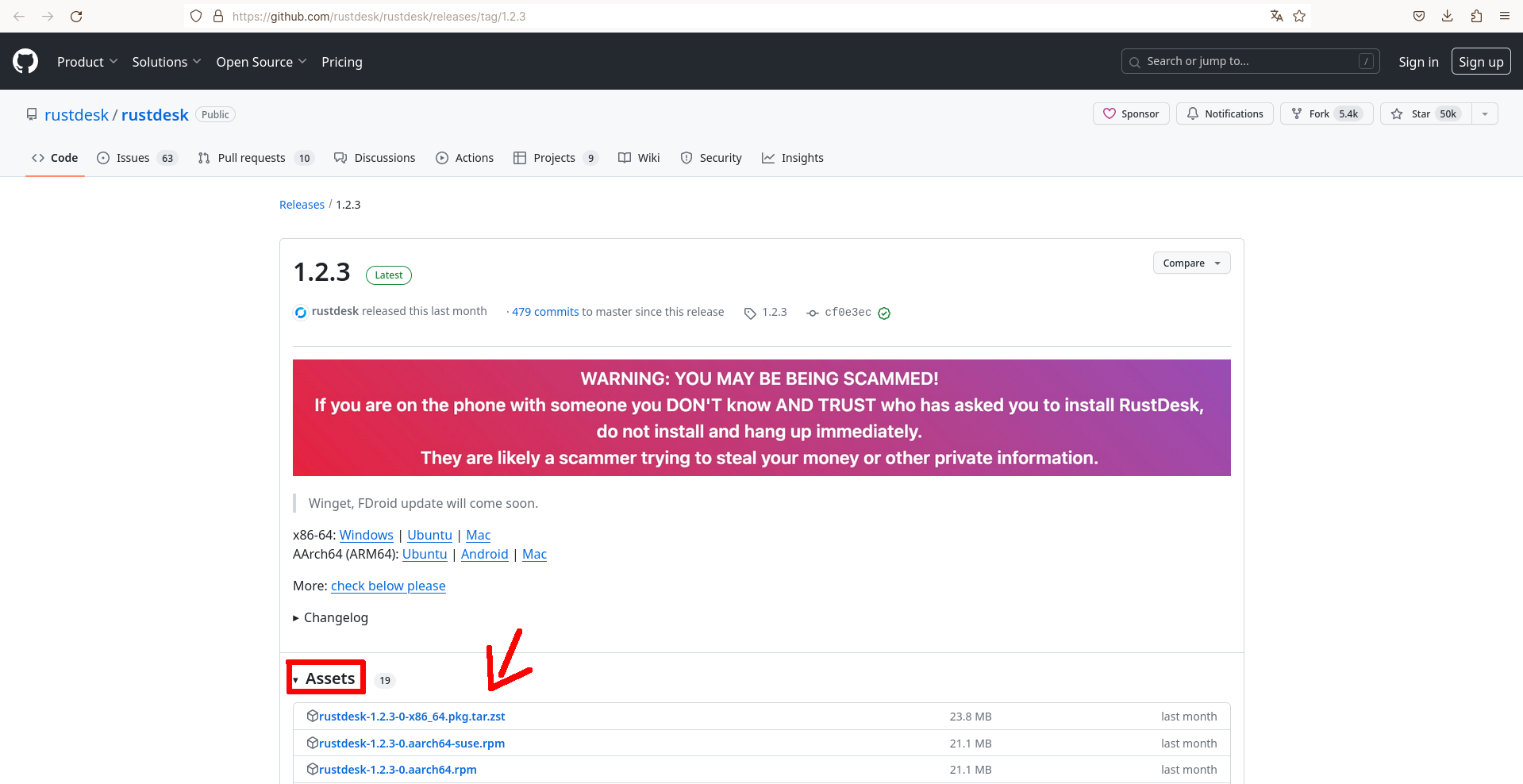 Wählen Sie unterhalb “Assets” die für Ihre Linux-Distribution passende Version aus.